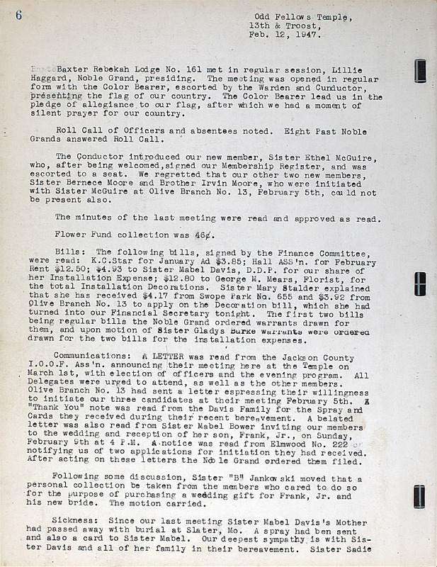 Independent Order of Odd Fellows Lodges of Jackson County, Missouri Collection