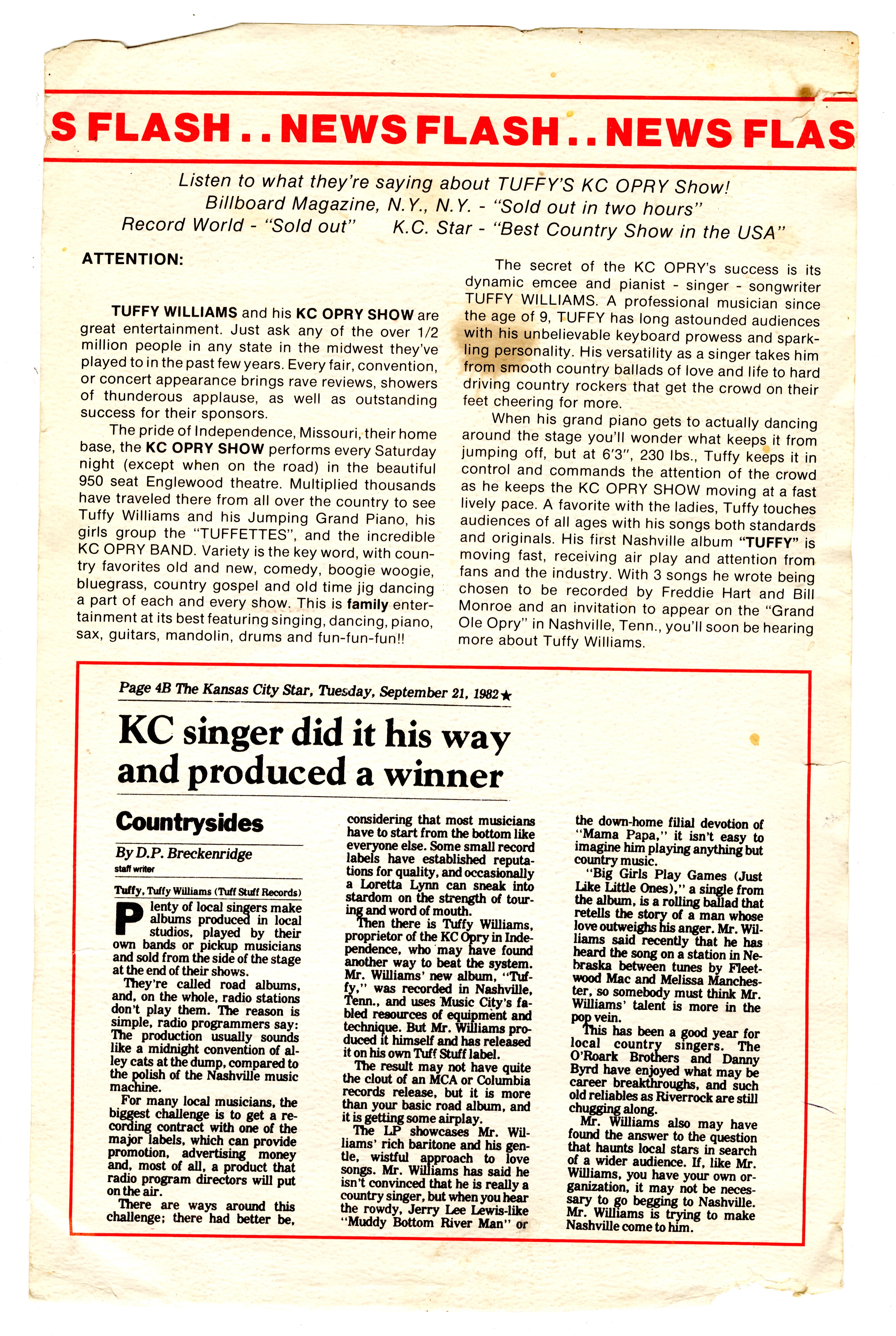 - KC Opry Show Publicity Sheet
