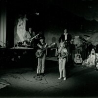 - Opry house band playing on stage with early backdrop